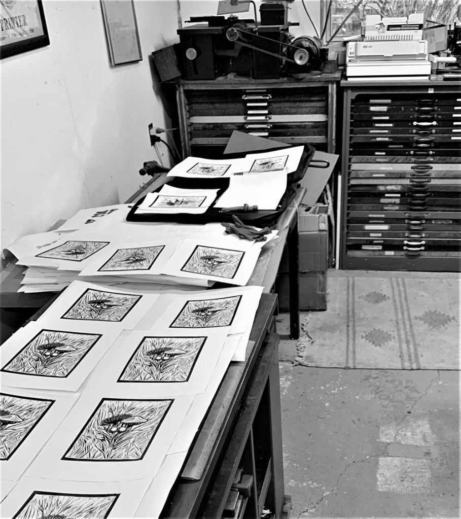 I graduated ACAD as a fine art print maker and I continue to make prints to this day. The prints I make and sell are either serigraphs, lino cut or wood engravings. I print with oil based inks on archival rag papers.